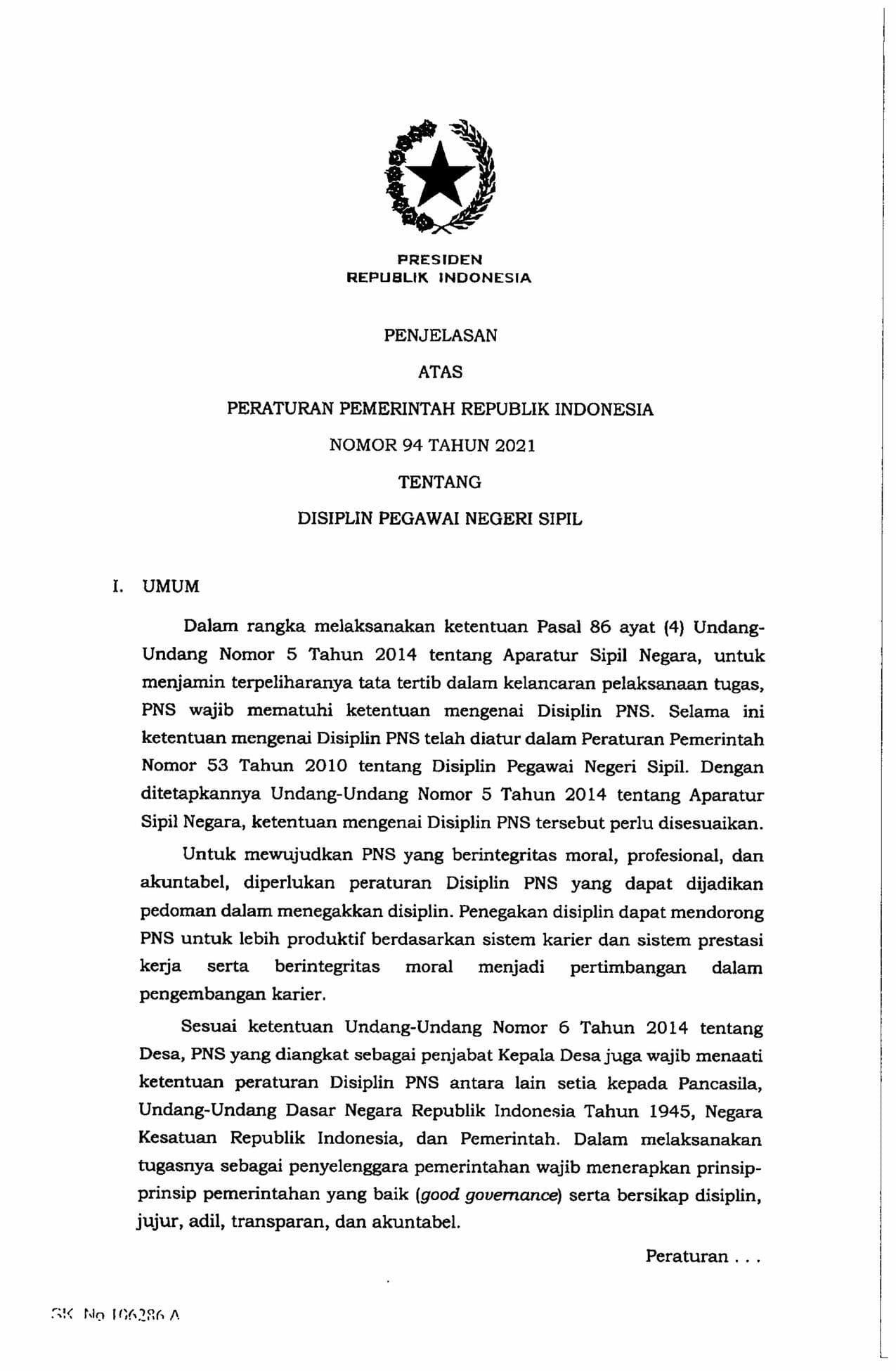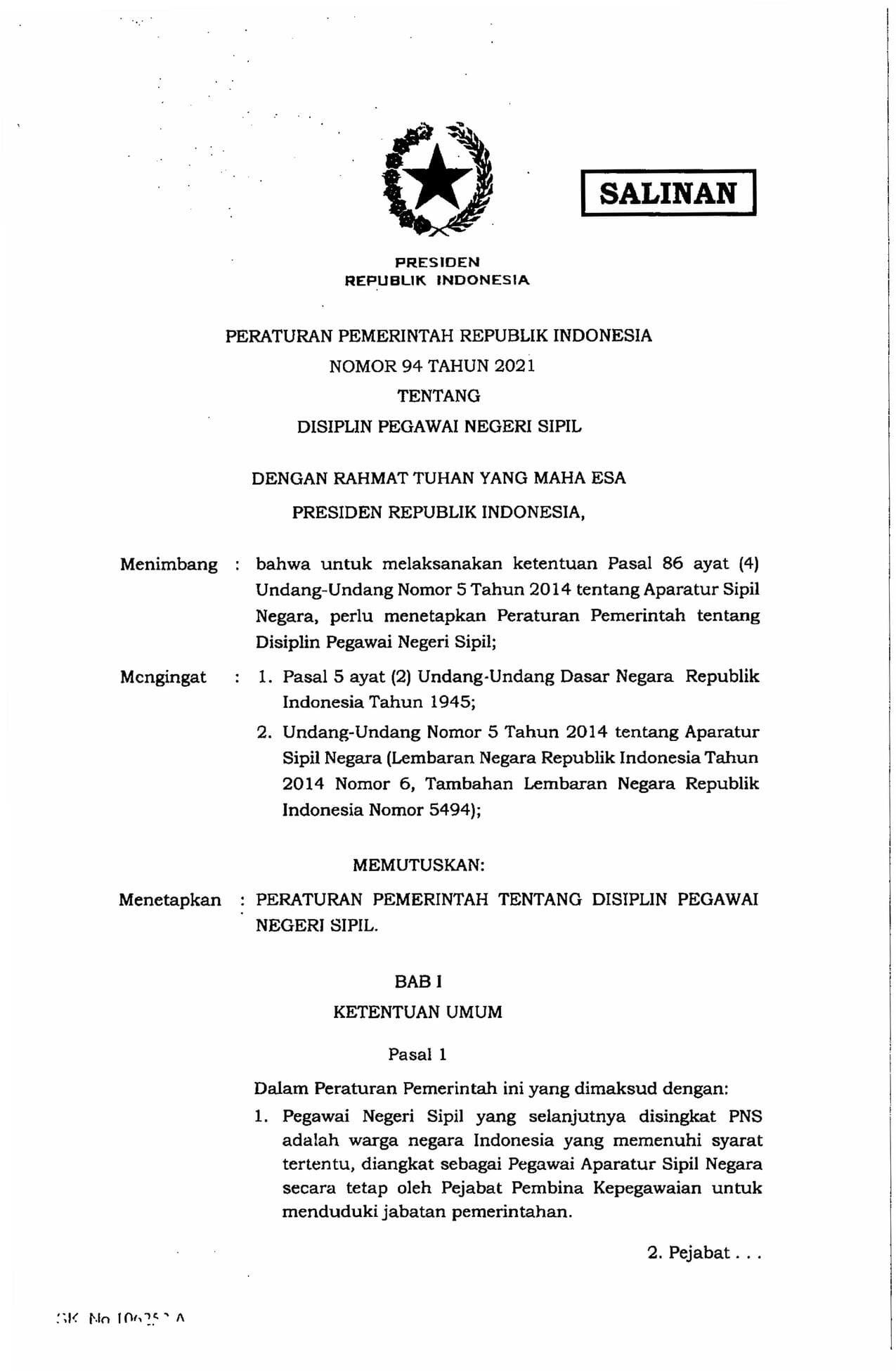 Peraturan Pemerintah Republik Indonesia Nomor 94 Tahun 2021